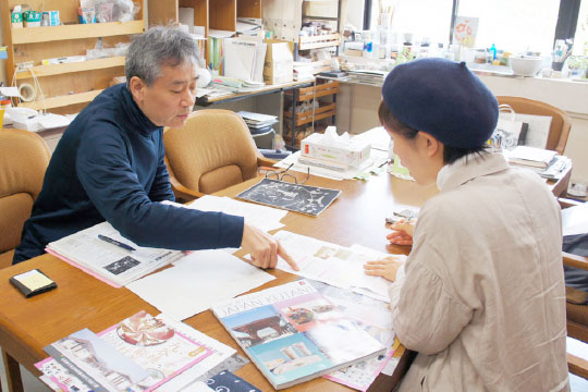佐藤さんの工房に手伝いに来ているアルバイトの西田さん。下絵の作業中を撮影。