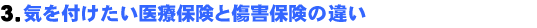 注意したいのは、医療保険と傷害保険の違いです。医療保険は病気・ケガに対しての補償を行いますが、損害保険の医療給付は障害(ケガ)だけに限定されます。加入前のパンフレットや既に加入されている場合には証券をよく確認しましょう。