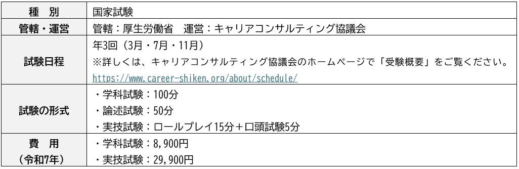 <キャリアコンサルティング協議会「5分でわかるキャリアコンサルティングの資格試験」より>