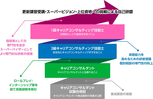 1級は、実務経験を6年以上積み、確実に実力をつけて指導者としてキャリアコンサルティング業界を支え、後進の指導に当たりたい方にお勧めです。