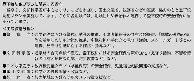 <下記の各省庁「登下校防犯プラン」に関するウェブサイトより>